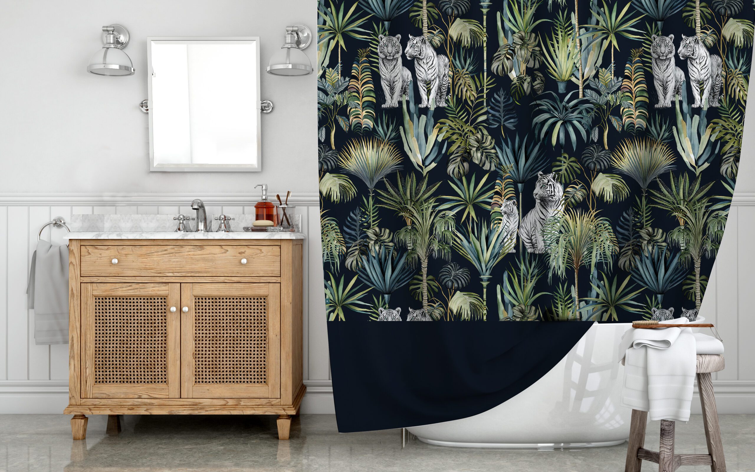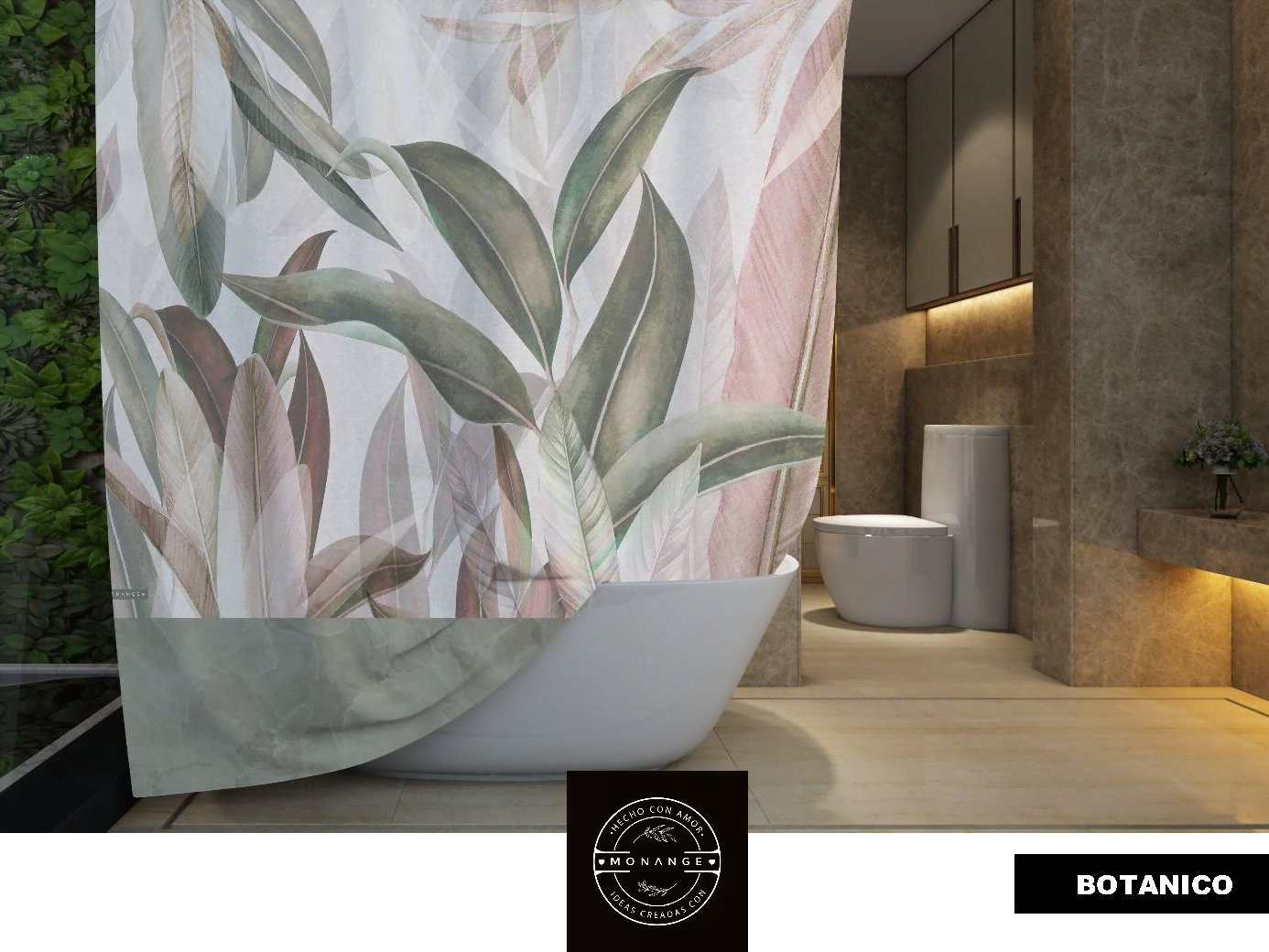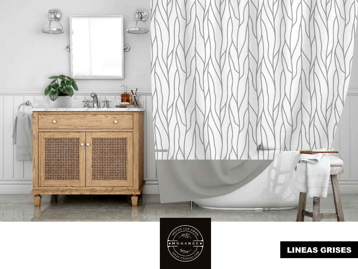 Cortina de baño impermeable, diseños exclusivos, modernos, medida 180 x 180 (puede reducirse por los ruedos), no necesita argollas ni cobertor, tela gabardina repelente de líquidos.